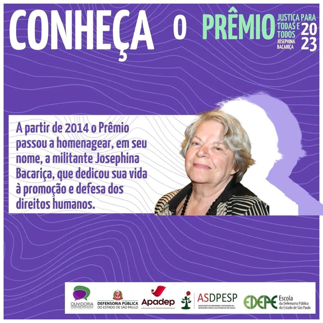 Prêmio "Justiça para todas e todos, Josephina Bacariça - edição 2023"
